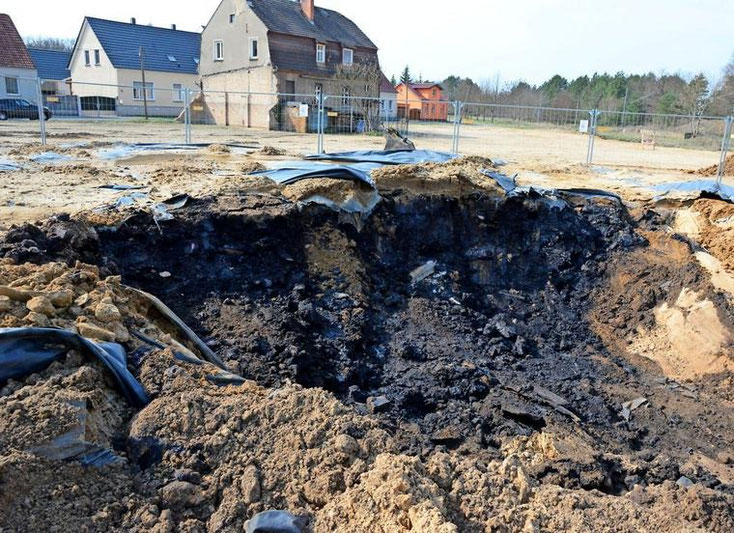 Noch vor wenigen Tagen klaffte dieses mit Teer gefüllte Loch auf dem Gelände in Woltersdorf Quelle: Margrit Hahn