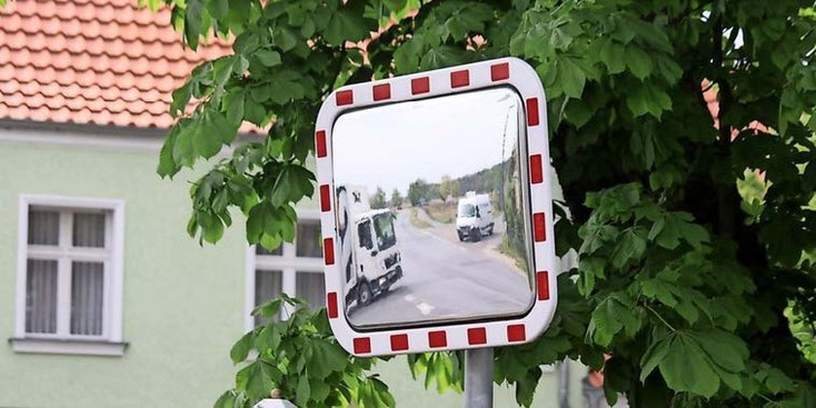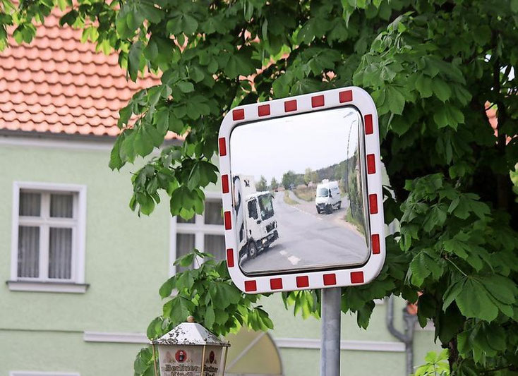 In Ruhlsdorf helfen derzeit vor allem Weitwinkel-Spiegel dabei, die unübersichtlichen Situationen auf der Ortsdurchfahrt zu überschauen. Quelle: Victoria Barnack