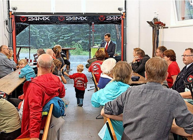 Er dankte nicht nur den Planern, Handwerkern, Verwaltungsmitarbeitern und dem Bauhof, sondern auch den Holbeckern selbst. „Sie fordern nicht nur oder geben kluge Ratschläge, Sie packen mit an, wenn Hilfe nötig ist“, lobte Scheddin insbesondere das Engagement der Feuerwehrleute unter der Regie von Nico Becker, dem Ortswehrführer und stellvertretenden Gemeindebrandmeister und von Ortsvorsteherin Katja Becker.