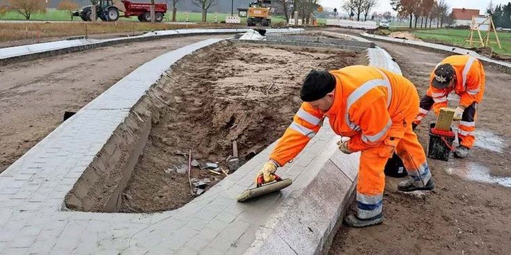 Die erste Verkehrsberuhigungsinsel entsteht am Ortsausgang Richtung Luckenwalde. Quelle: Iris Krüger