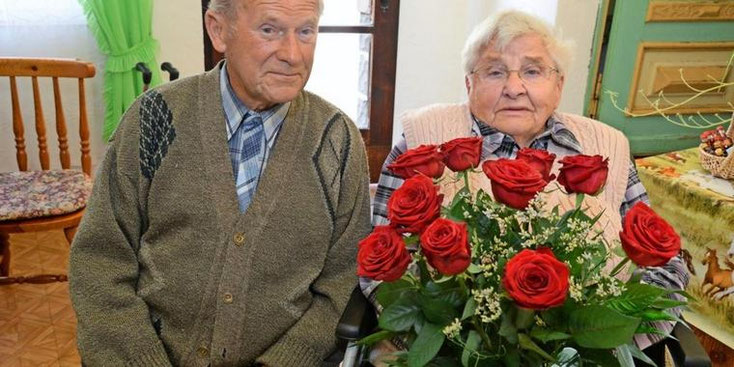 Christ und Arnold Müller sind seit 60 Jahren verheiratet. Zur diamantenden Hochzeit gab es einen großen Strauß voll roter Rosen. Noch heute erinnern sich die beiden an den Tag als sie einander die ewige Liebe und Treue versprachen. Aber ganz ehrlich sagen sie auch: Ohne Donnerschlag geht es eben nicht.