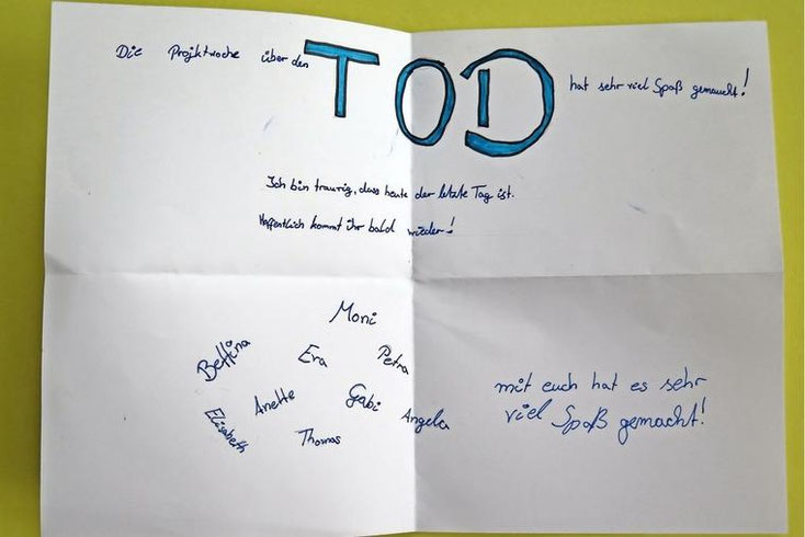 Statt Unterricht gab`s das Projekt " Hospiz macht Schule".