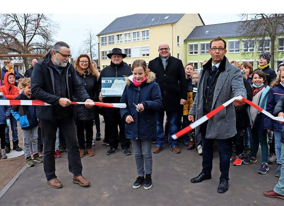 „Wir haben lange auf den Umbau gewartet“, sagt Rektorin Christina Schneider in ihrer kurzen Ansprache, aber nun sei es endlich Realität. „Die ersten Planungen zur Schulhoferneuerung stammen