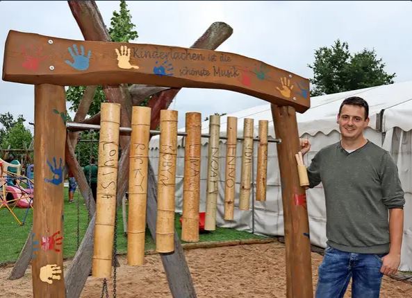 Udo Kühn, Papa vom „Wackelzahn“ Noah, hat das Klangspiel gebaut,