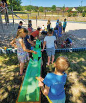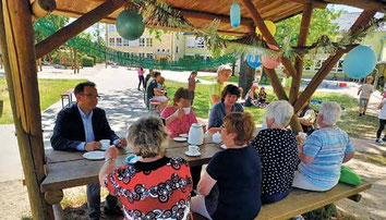 Dank des wunderschönen Wetters konnten wir neben verschiedenen Outdoorspielen auch unsere Wasserbahn aufbauen. Im Schatten auf einer Picknickdecke schmeckte der Kuchen einfach lecker. Wir bedanken uns herzlich bei der Seniorenbeauftragten Frau Hauchwitz für die tolle Organisation. Ein weiteres Dankeschön gilt unserem Bürgermeister Herrn Scheddin, der uns an diesem Tag mit einem Besuch überraschte.