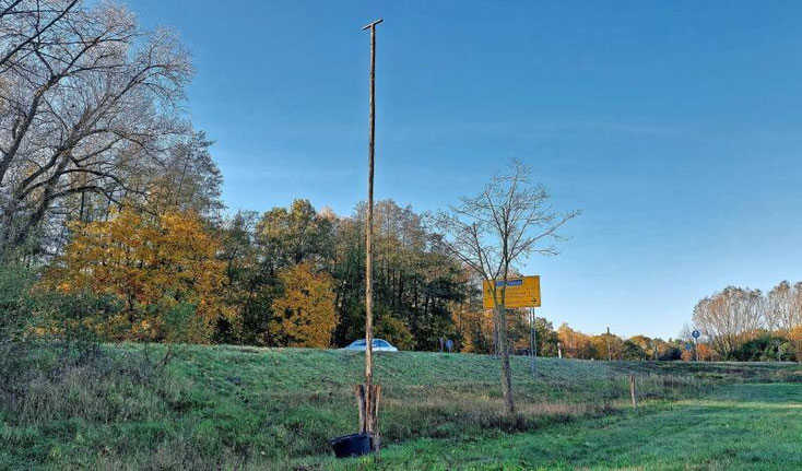 Stangen und Kübel sollen Greifvögeln helfen und junge Bäume retten